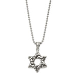 Men's Stainless Steel Antiqued 3D Star of David Necklace, 24 Inch