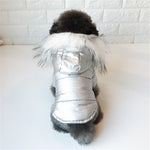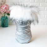 Metallic Silver/Gold Faux Fur Hooded Dog Coat
