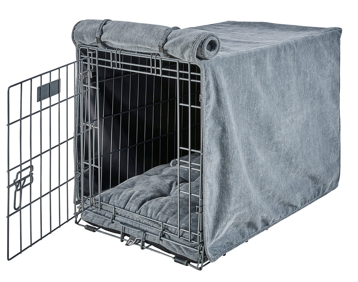 Dress up Your Wire Crate in Style! This Luxury Cover not only gives your dog privacy and security, but adds a touch of class to ordinary looking wire crates. The finishing touch to our overwhelmingly popular Luxury Crate Mattress. The most practical and stylish crate set on the market. Roll up front panel. Machine washable and dryable. Please note: Luxury Crate Mattress sold separately.