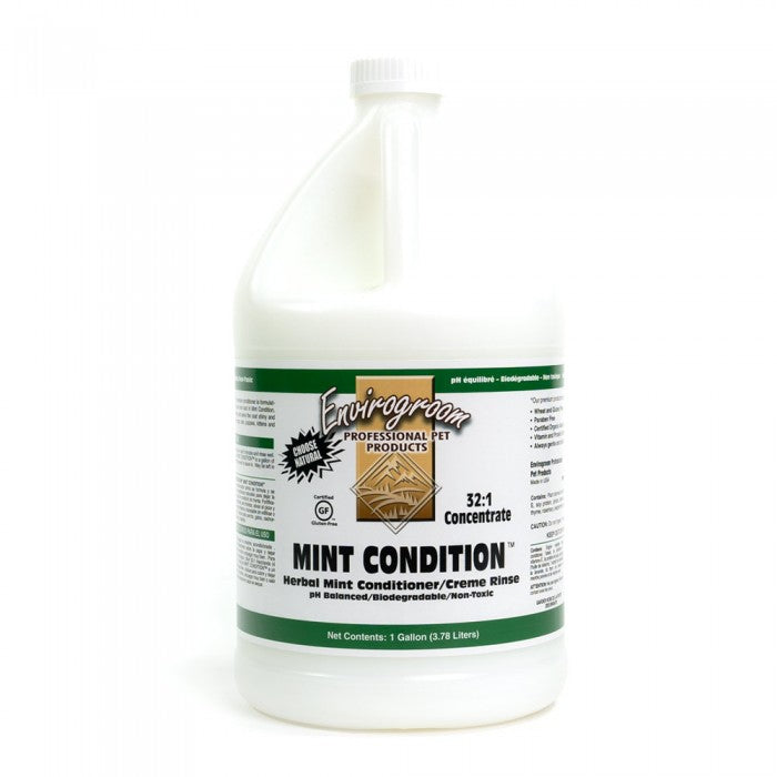 Envirogroom's premium mint conditioner, fortified with natural ingredients, its designed to leave your pet's coat in Mint Condition Leaves all coat types conditioned, rich and silky smooth Relieves itching and leaves coat shiny and manageable...