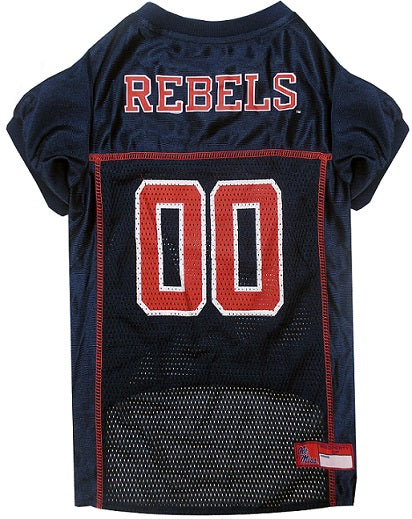 Offically Licensed Mississippi Rebels dog jersey made of 100% mesh material. Available in Xtra Small, Small, Med and Large and made by Pets First.