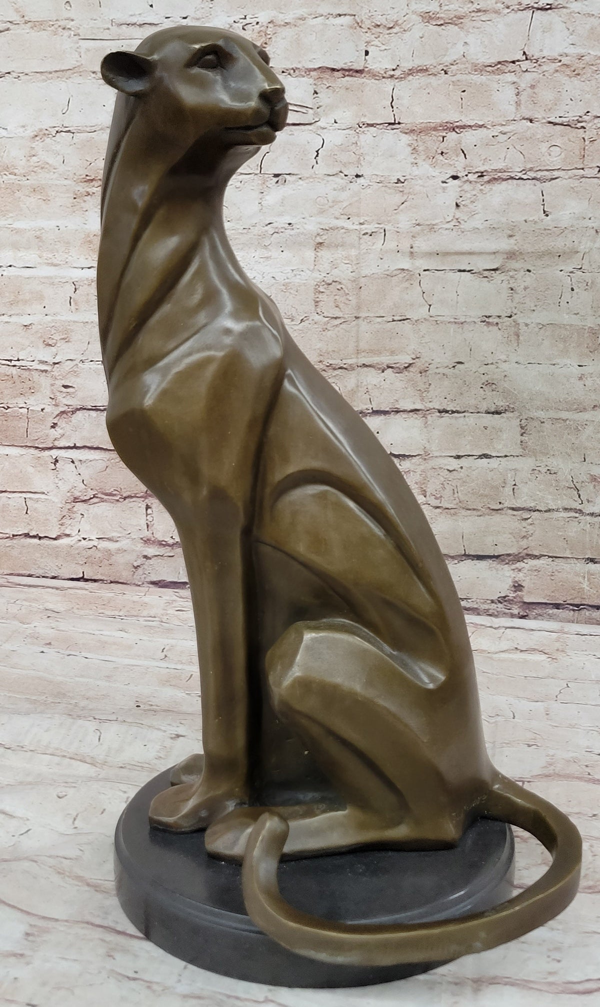 Handmade with utmost care, this sculpture showcases the artistry of the Lost Wax Method, ensuring that no nuance is left unattended. The two-toned brown patina lends depth and character to the sculpture, while the signature of H. Moore guarantees its quality. Resting proudly on a round black marble base, this piece is more than a mere decoration – it's a tribute to the untamed beauty and relentless power of the king of all wild cats.