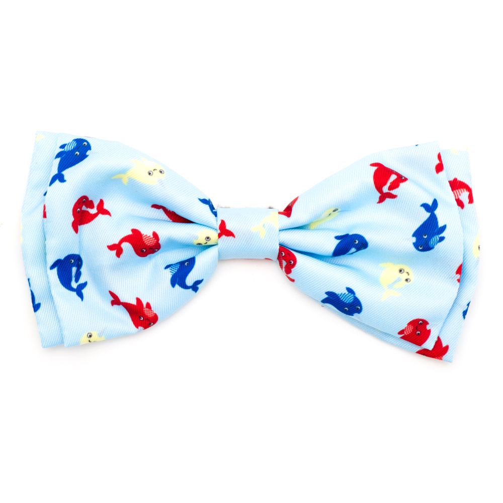 Bow ties for the dapper dog (or cat!) The perfect accessory for instant style—dress your pup up quickly and get ready for that photo! Easy to attach to or remove from almost any collar with a soft and secure double-sided touch fastener strip on back. Available in two sizes to fit most pets: Small: 4” W x 2” H; Large: 5.25” W x 2.5” H