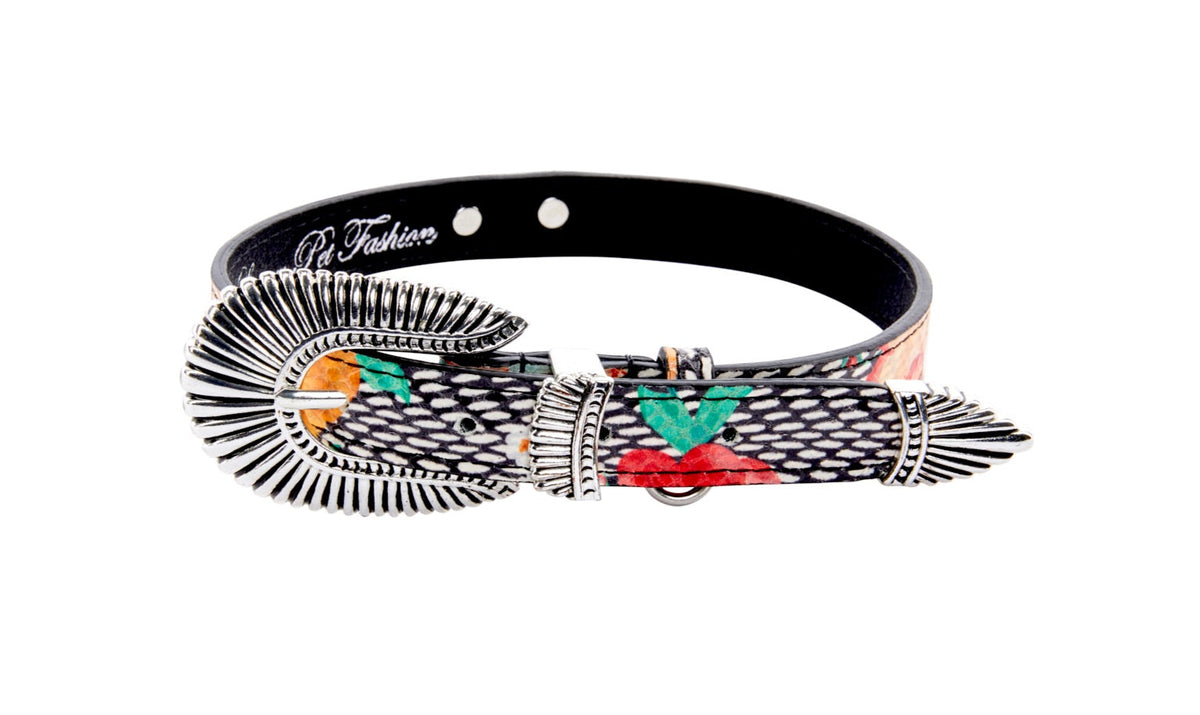Pansy and Snake Print Embossed Italian Leather With Ornate Italian Hardware
