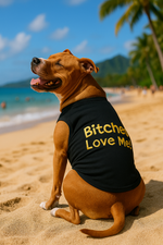 The Parisian Pet 'Bitches Love Me' Funny Dog Shirt is the perfect mix of humor and style for your furry friend. This funny dog shirt features a playful embroidered design, ensuring your pet stands out in any crowd. Made from soft cotton pet shirt fabric, it is designed to keep your dog comfortable throughout the day, while offering a breathable and cozy fit.