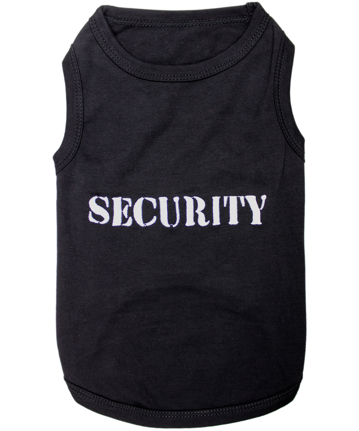 The Parisian Pet 'Security®' Embroidered Dog Shirt is the perfect combination of style, comfort, and fun. This bold dog t-shirt features a unique fun slogan dog shirt design that adds personality to your pet's wardrobe. Made from comfortable pet clothing, this shirt offers a soft, breathable fit for pets, ensuring they stay comfortable while looking stylish.
