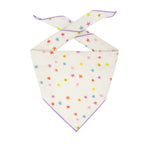 All Birthday Bandanas Paisley Paw Designs Dog Bandanas are handmade in the USA with attention to every detail. Lightweight - just tie around your dogs neck, dogs don't even notice they're wearing it. Our Bandanas are made with quality fabrics using designer prints and sewn for durability. Each Bandana has a rolled edge on all 3 sides for a finished look! Our Bandanas are “one of a kind” as pattern placement varies. How to Use: For large dogs just tie around neck, smaller dogs roll down the top edge to make smaller and tie around neck, leaving a few inches for comfort. Wear bandana in front of chest or to the side or laying on dogs back – you choose the look! Care: Machine wash cool water, lay flat to air dry (do not Iron Vinyl areas) Fabric: 100% Cotton Sizes: are approximate and may vary slightly X-Small - 13" x 13" with 18" diagonal Small - 15" x 15" with 21" diagonal Medium - 18" x 18" with 25" diagonal Large - 21" x 21" with 29" diagonal X-Large - 24" x 24" with 33" diagonal NOTE: Always give yourself a little wiggle room in your measurements + a few inches on each end for the knot!