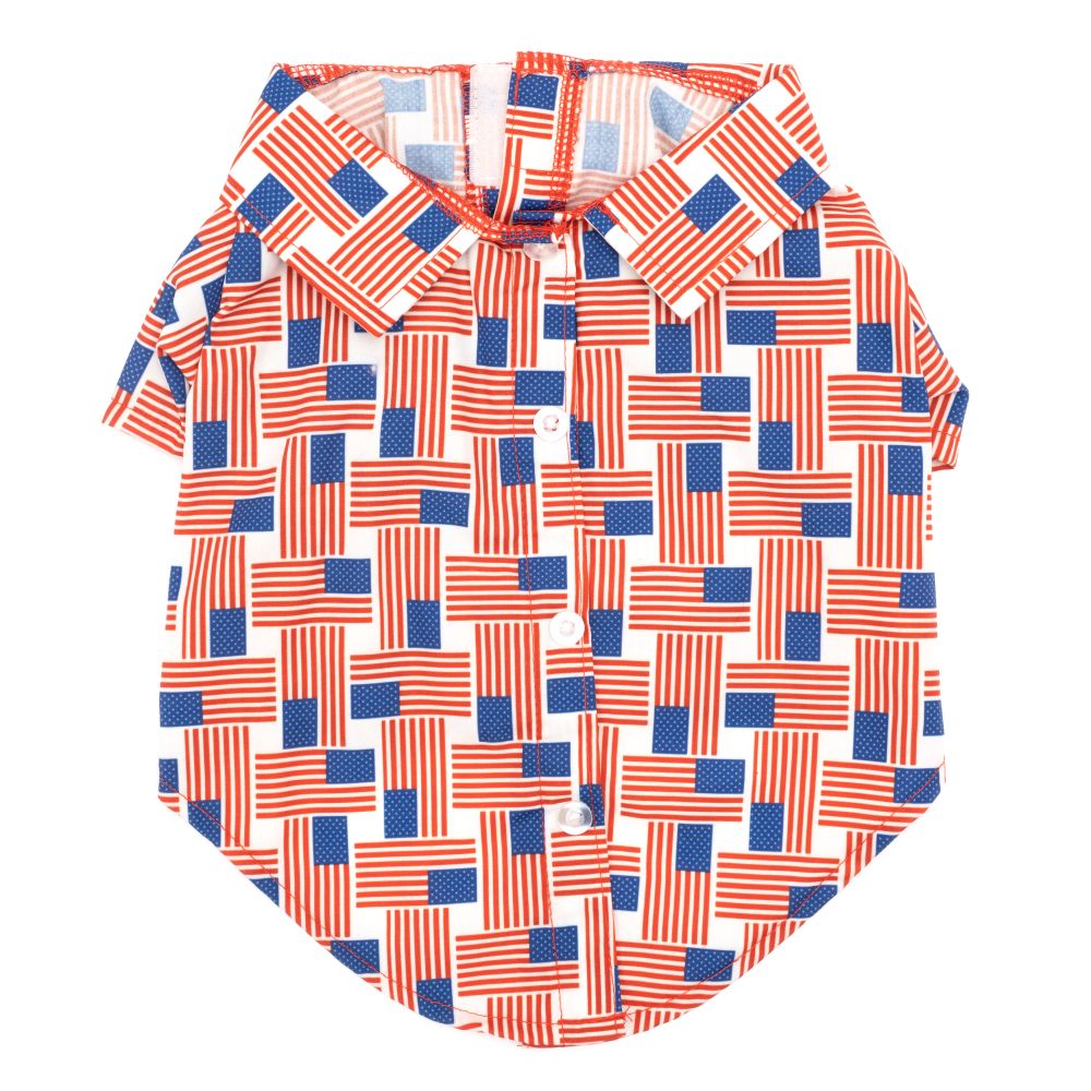 Fabulously stylish for the dapper dog! We make our designer dog shirts with quality fabrics and colorful, unique prints. Constructed of soft and durable polyester fabric, they're sure to make a statement! The perfect easy fashion staple for the discerning dog, it's comfortable to wear and is designed to provide an easy-to-dress fit with touch fastener closures on the belly and a faux back button-up placket. The high-cut stay dry belly keeps pups looking good while out on the move. Pair with our matching accessories, collars, and leashes, and we'll have your furry friend ready to look their best for every occasion. Machine washable for easy care.