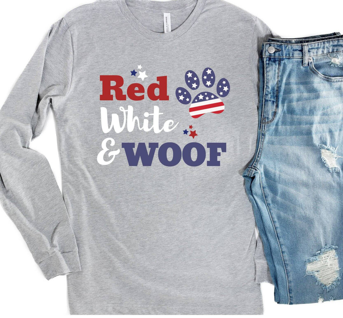 Patriotic Shirt | People Shirts | Printed Tshirt | Human Dog Gear | Dog Lover | Long Sleeve | RED WHITE & WOOF