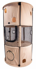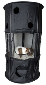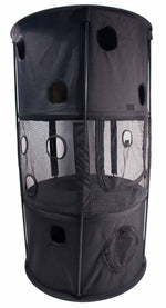 The Pet Life Climbertree circular obstacle collapsible travel Cat House is composed of heavy duty Nylon and mesh. The Climbertree is easy to install or setup compared to the bulkier conventional cat houses. Perfect for Travel, Indoor or Outdoor usages, simply folds and collapses and features durable collapsible fiberglass poles that easily attach to the 4 corners to hold up it's structure. Features an array of multiple zippered and circular entrances for interactive play on both the bottom and secondary levels. Great for lounging or interior play. Available in Multiple Colors.