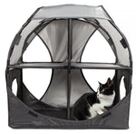 The Pet Life Kitty-Play Obstacle Travel Collapsible Soft Folding Pet Cat House is constructed with durable PU coated polyester and mesh netting all around for breathability and framed with lightweight poles for added durability. The Kitty-Play Cat House features pass-through entrances at the bottom with dual mezzanine holes for climb through passage. Easy to install and setup. Great for interactive fun and brain activity development. Heavy enough to hold over 120 lbs. of weight, and light and small enough to travel and setup. Easier for storage and a simpler alternative to those bulkier conventional heavier cat houses. Features multiple tunnels located at the interior making it great for multiple cats. Available in multiple colors.