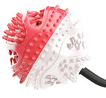 The Pet Life ® 'Grip N' Play' Treat Dispensing Ball Shaped Suction Cup Dog Toy is designed to suction and grip to any and all hard surfaces in a matter of seconds. Features Dual-Rope strings that provide high-range tension and pull-resistancy that is connected to a Rubberized Ball-Shaped Toy containing numerous crevices for placement of Treats and Dry Dog Food for a fun and engaging interactive experience. The Ball Toy further features numerous ridges all around designed to massage gums and clean teeth by removing Plaque and Tartar. The Grip N' Play makes a fantastic self tugging toy that helps build muscle strength along the neck and shoulder areas. Features a large Suction cup on the other end with a pinch-to-release flap for convenient removal off hard surfaces.