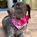 Handmade in the USA by Chloe & Max, this Pink Flowers Bandana Dog Collar features various shades of pink flowers on white, with pink gingham trim and backing. These gorgeous buckle bandana collars come in 5 sizes XS-XL and snap on easily.