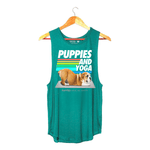 PUPPIES & YOGA - Our all-time best selling graphic, now available on the new size-graded sleeveless top. As seen in the movie Dog Days. We use the softest fabric on earth to create these tanks...