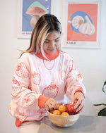This ultra-cozy sweater has a fruity twist! With a 100% premium cotton construction and an irresistibly berry-soft feel, you'll be ready to rock the look with its red strawberry details popping against a classic Gingham...