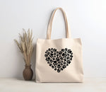 Valentine Tote Bag | Canvas Tote | lightweight 6 oz Canvas | HEART with PAW PRINTS