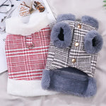 Winter Fleece-Lined Check Dog Harness Dress Coat